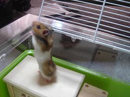 ここを登ると、出れましゅか~お友達のカエデちゃんに、教えてもらった方法なんだ~登れたよ~ちっちゃな穴めっけ~~クンクン・・よし!その内ここをカミカミしようっとカミカミも、お友達のカエデちゃんが教えてくれたんだ~回し車を壁から少し離す事に・・この上に、どうしても乗りたいんでしゅ・・ま・・まわる・・誰か・・回らないように抑えててくだしゃい小・・小金・・何見てるのシュワーッチ乗ってるし・・どうせなら・・これ、どけてくだしゃい・・ボク、跳べるだけじゃなくって、壁だって登れるんだ~すごいっしょ??うふっ!東京のみやっちおかあしゃん見ての通り、ボクとってもいい子にしてましゅ。運動の後のおきゃべちゅ、うまいでしゅ