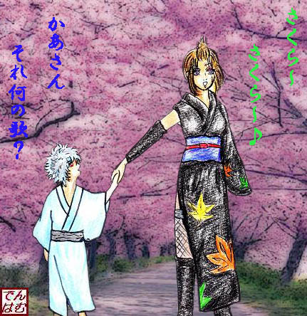 もうすぐ春分・・・春ですね~桜ですね~。またまた銀月で遊んでみようと、今回のテーマは「‘サナギな銀さん’と‘お母さんな月詠さん’」月詠さんの母性(父性?)と松下村塾時代よりちょっと小さいイメージの子銀。親の顔も温もりも知らない銀さん・・・では、ちっちゃい銀さんにこんな思い出をプレゼント!って感じで。 月詠さんならきっとサナギな銀ちゃんを温かく包み込んでくれるんだろうな。でもビシッとやるときゃやるからね、銀ちゃん怒られてばっかなんだよ~(^∇^)でも銀ちゃんはお母さん大好きだからもっと叱って欲しくてイタズラばっかりしてるんだよ~・・・と、妄想は果てし無く続くのであった・・・ 今日も大雑把な絵ですんまっせん。背景で誤魔化そうとしてすんまっせん。 (攘夷迂回路に向けて攘夷な四人組も練習しないとなぁ) ← ポチッと押して頂けるとヘタレにも勇気でます 相変わらずのヘタレ祭り続いてます( ̄ー ̄;