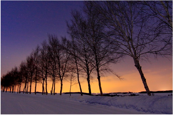 そして、遠く旭川の街の灯りが、空を、まるで夕陽の残照かのようなオレンジ色に染めています。
