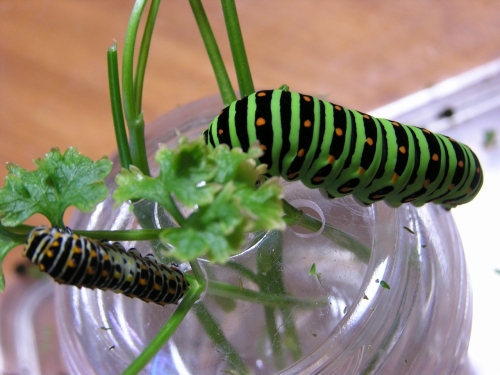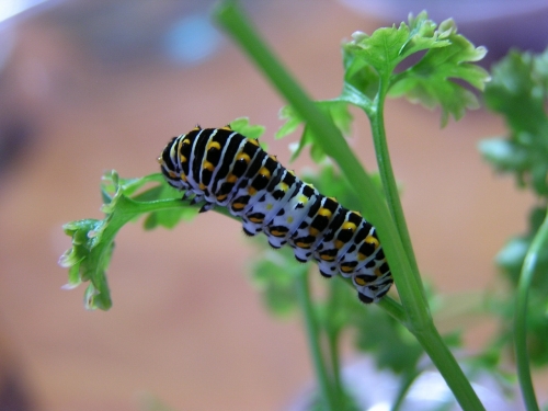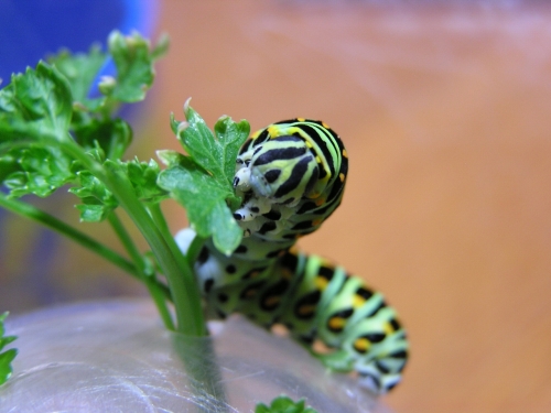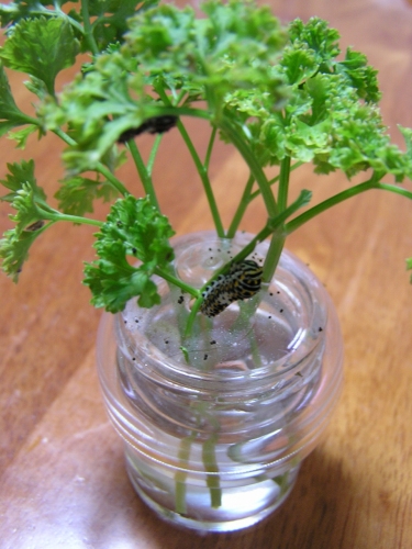 見切り品の10円パセリにキアゲハのたまごがみっつ。