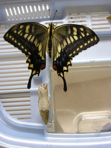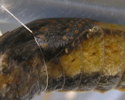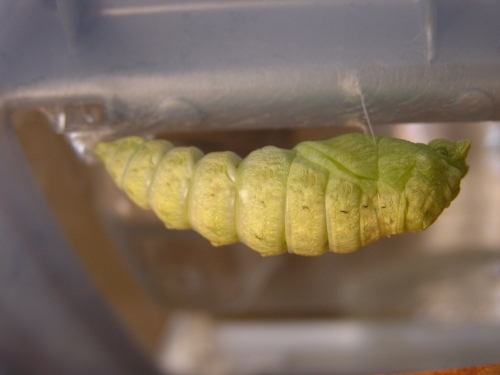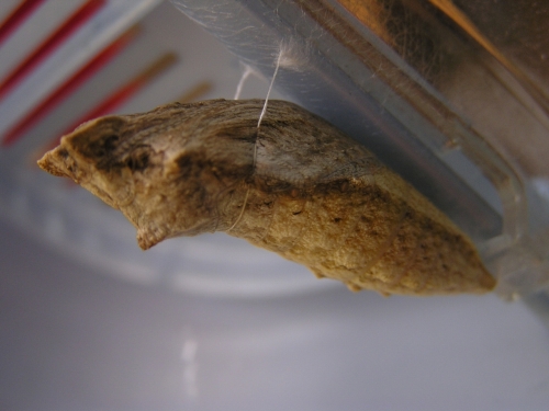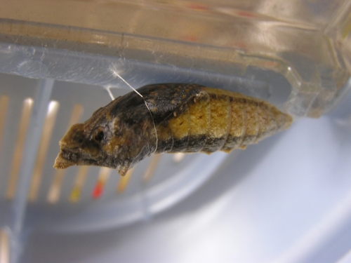 かつおぶしみたいな蛹の色が濃くなったよ。