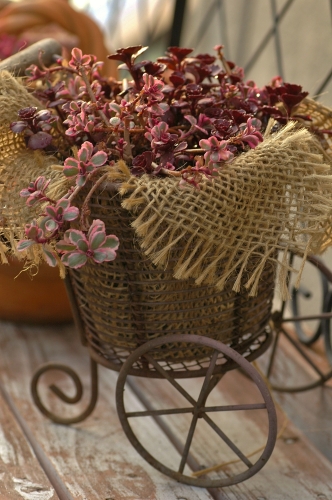 またまた 超久しぶりの日記です。 夏休みもやっと終わり 落ち着きを取り戻した今日この頃ってとこです。お花屋さんは すっかり 秋の景色。さらには エリカや パンビーも入荷し 冬も見えてきた感じです。 さっそく 秋モードな 寄せ植えとハンギング 作りたい衝動に駆られて・・・ 7年 使い続けた花車を またまた 塗り直してみましたうーーーーん 失敗・・・ま、また塗ればいいやね けっこう 派手でしょこれから もっと 赤葉千日紅なんかが色づいて 賑やかになると思います ヒューケラや 初雪カズラは 常時あると 寄せ植えにとっても便利な素材ですね とうがらしとジニアと黄花コスモスに用途考えずに増やしていた 虫喰いコリウスを加えてみました 観賞用唐辛子、ほんと色々な種類があってどれも綺麗一度 使ってみたかったんです 秋色って なんか いいなぁ 地に下ろしたガウラがすごいことになってる駐車場 狭し!! 助手席の扉が 開けられず 嬉しい悲鳴!! またいつ更新できるかわからないので たくさん 写真放出しました それでは また いつの日か(汗)