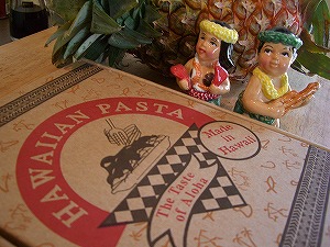 台所から去年旦那サンがハワイから買ってきていたパスタを見つけました。ほとんど記憶から抹消されつつありましたアロハ味って書いてありますねぇ~~。アロハ味。どんな味じゃ。箱を開けてみましょう。すると・・・中から、キウイ・マカダミアナッツ・マンゴーテイストのパスタがでてきました。う~~~~ん・・・・微妙・・・・。どれも用意していたミートソースと合いそうにないけど。しかし、あまりがちな特産物練りこでるのかしらね。とりあえず、マカダミアをゆでて食べてみました。マカダミア味はほとんどしませんでした。きっと他のもそんなじパスタ自体の味の主張はないのでしょうね。それより気になるのがお蕎麦のような形と食感・・・。ミートソースで蕎麦たべてるみたいだなぁ。醤油ダレが合っていたかも??ところで箱の裏を見るとこのパスタに合うレシピが書いてあったのですが二つ目の例をよく見ると「FURIKAKE SALON OVER HAWAIIAN PASTAWITH A WASABI CREAM SAUSE 」(ふりかけと鮭のわさびソースがけハワイアンパスタ)とあります。作り方をみてまたまたびっくり。aji nori furikake か nori goma furikake を使ってくださいと書いてある。ふりかけは海外でも手に入るので珍しくないですがでもここまで細かく指定されているとは・・。面白いもんですねぇ。でも鮭とふりかけのハーモニーって想像できないのは私だけでしょうか・・。