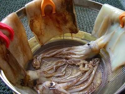 子どものおやつといえば、果物や赤ちゃんせんべい等のお菓子。うちはそれに加えて、「するめ」をあげます。正しくはおやつ、といよりは、間を持たせるためのものですが。静かにしてほしいとき、退屈なとき、これをあげます。先日、外に出かけ、おにぎりが暴れて大変だったときこれをあげました。するとものすごいブーーイング!!>おにぎりを背負っていた旦那さんから臭いんだけど・・・そんでもって俺のTシャツに擦り付けてるみたいなんですけどまぁ・・・細かいことを気にするなってイカ臭い親子のいっちょできあがり~~。母はその3歩下がって ついてあるくのでした ウフ!!そんな旦那さんのために、イカの一夜干しを作ってみました。ちょっとあぶってマヨネーズとしょうゆを半あわせにしたものに、ちょっとつけて食べる。これがんま~~~~~!!! おにぎりにも好評♪(余談ですが一歳越えたおにぎりは もう、なんでも食べさせてます。甘すぎるお菓子や脂っこいものとかは別ですが)実は初めて作ってみたけど、干すのに苦労しました。干す、専用のカゴがほしいと思った今日この頃なのでした。下はそのときの写真。あんまり格好のいいもんじゃないですね^^;もちろん、洗濯バサミはこの後、よ~~~~くウオッシュしましたヨ。