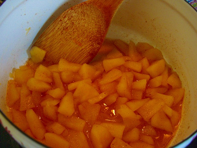 先日、石釜を使ってパンを焼くのが売りのパン屋さんで、なにげに買ったパンがすごくおいしかったんです。石釜で焼いたパリパリのパンの中には、シナモンアップルと栗がゴロゴロと・・・。特にシナモンアップルがとってもおいしい!!これなら自分で作れそう!と今日は早速作ってみました。砂糖とバター、そして少量のレモン汁。最後にシナモンを振りかけて出来上がり。以外に簡単でお・い・し・い♪作ったこのシナモンアップルで、ホットケーキを焼いてみました。私もおにぎりも ウマウマ~~~。ああ~~こうやってデブは受け継がれていくんですね・・。