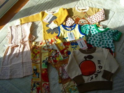 明けましておめでとうございます(。・_・。)ノお正月は、新年会やら旦那さんの実家へ里帰りやらでばたばたしておりました。やっと通常モードになりつつある我が家です。今年もどうぞよろしくお願いいたします(*'-')o(*,",)oさて、さて、今年、一発目の話題は“福袋”福袋自体あまり買ったことなかったのですが、楽天お友達のnaoさんがグランドパパの福袋を前回絶賛していらっしゃったので、ちょっと興味がわき( ̄▽ ̄)♪すごく人気で、すぐ売り切れるみたいなのですが、今年は購入成功♪お正月に届きました!どうでしょう?!これだけ入って10500円はすごくお得!元値でいうと3万以上入っていました。私は子ども服のブランドのことはよく知らないのですが、すべてブランドものらしく物もとってもよさげ♪真中辺に写ってる、カラフルなズボンは定価が7千円(; ̄Д ̄)!うう・・・どんなセレブが普段買っているんでしょうかっ。でも、どれもこれもかわいくって私好みヾ(@⌒▽⌒@)ノワーイ!左はしに写ってるワンピも刺繍が入ってて、とってもかわいいですよ。刺繍見えるかな??それと、もう一つ、おにぎり用に買った福袋。これは近所で買い求めたもので、五千円。左上に写ってる缶がほしくって買ったようなもの。クッションがついてて椅子になるし、中におもちゃも入れられるしね♪なかなか福袋っていいですねっ!デパートなんかに徹夜で並ぶ人の気持ちがわからなくもないな~。あたりはとってもお得だもの♪さっそく買った福袋から試着したポイポイ星人おにぎり。(さっそく後ろがポイポイされた後でございます。)あまりポイポイにせいを出しすぎたせいか、髪も服も乱れております。そして、新年会で、マイクパフォーマンスを披露するおにぎり。“うわ~~ わっ わっ”と宇宙語をエコー付きで披露( ̄▽ ̄;A将来、マイクを離さず歌うタイプになるんじゃないでしょうね?!みなさん、こんな家族ですが、今年もよろしくお願いいたしま~~す