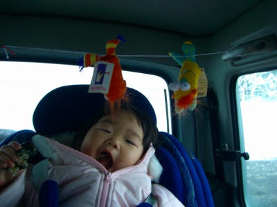 おにぎりが寝ているから この隙に、と、車の中で運転しながらアイスを食べ始めました。途中でおにぎりに気がつかれ大ブーイング!!運転中だったのと、アイスが溶けかけだったので、無視して、運転、食べ続けました。その後の、おにぎり・・・(線路は続くよどこまでも~の節で)♪かんしゃくは続く~~~よ~~どこまでも~~~~♪相当悔しかったらしい・・・。 ゴメン! 今日は母ちゃんが悪かっただっ!********************さて、今日の、タイトル、ええええ! というのは先ほど、おにぎりを 子育て支援センターで遊ばせようと車に乗せて発車すると、現地に着くまでに眠ってしまったのです。眠ってからさほどたってないはずだし、起こして遊ばせよう、と “おおーーーい、おにぎり着いたよ~~~”と叫んでも、“ユサユサ”としても起きません!!!!!(ノ゜o゜)ノ ウッソォ♪あの・・・・小さな物音でも目が覚める おにぎりが・・・・誰かに狙われているかのように、常に眠りが浅い おにぎりが・・・・揺らしてもおきない、だなんて・・・・。えええええええーーーーーー!!!です。しかたなく、家に逆戻り。おにぎりはそのまま昼寝に突入です。昨日は用事があって 保育園にあずけた疲れがまだとれないのでしょうかー。そういや、ここ2,3日、夜鳴きもせずに、夜目が覚める回数も減ってきています。母は、期待していいのかなーーーー?