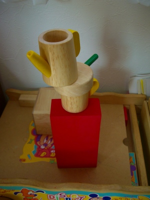 おにぎりの好きな遊びの一つ“積んじゃう遊び”なんでも、重ねてつんでしまう。過去に積み重ねた例はこんなのもありましたね。今までの最高記録?思わず写真をパチリ。知らぬ間に そのスキルはどんどん伸びつつあるようです。この遊びに付き合ってるのは、パパ。おにぎりの遊びにとことん付き合ってくれるパパにおにぎりはべったり。でも、昼間どんなにべったりでも、夜寝るときは私でなくては寝ないおにぎり。でしたがっ!最近、すこ~し変化が見られました。一度だけでしたが、パパが寝かしつけ成功!GWは、東京に私だけ結婚式参加で数日留守にする予定なのですがパパだけでも 大丈夫かもしれません。それまでに もう少し訓練が必要です♪