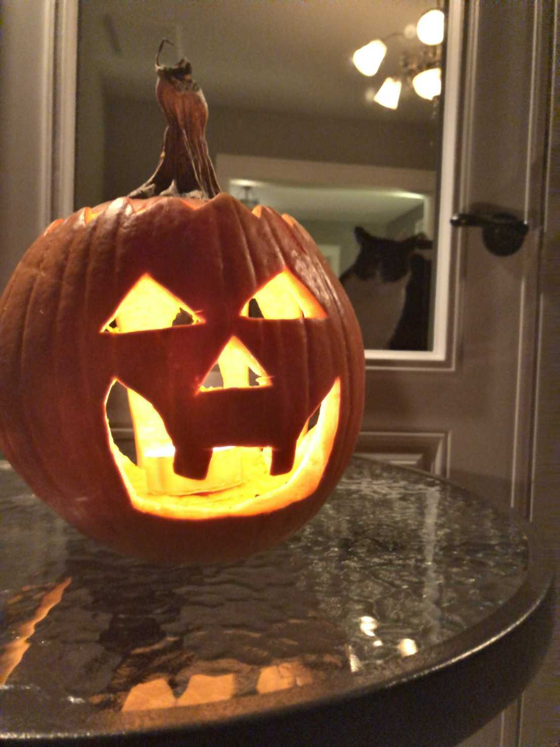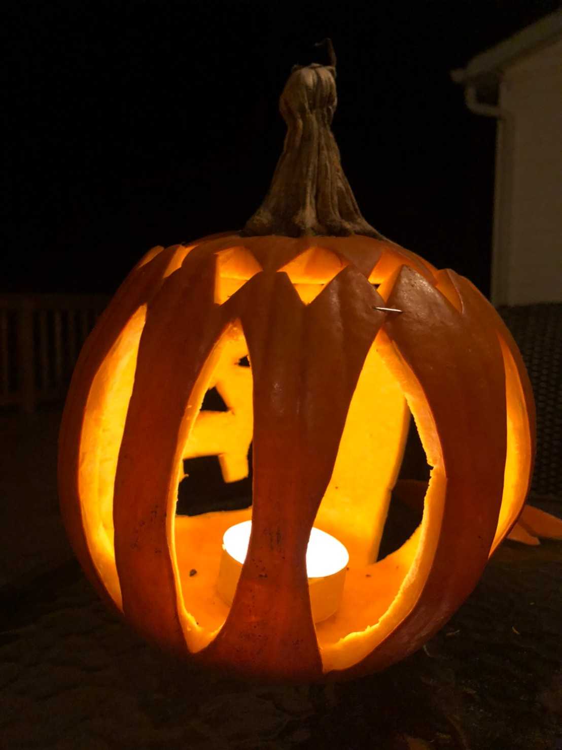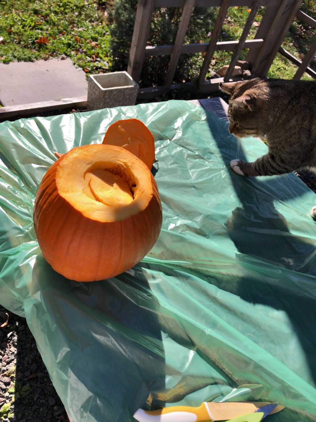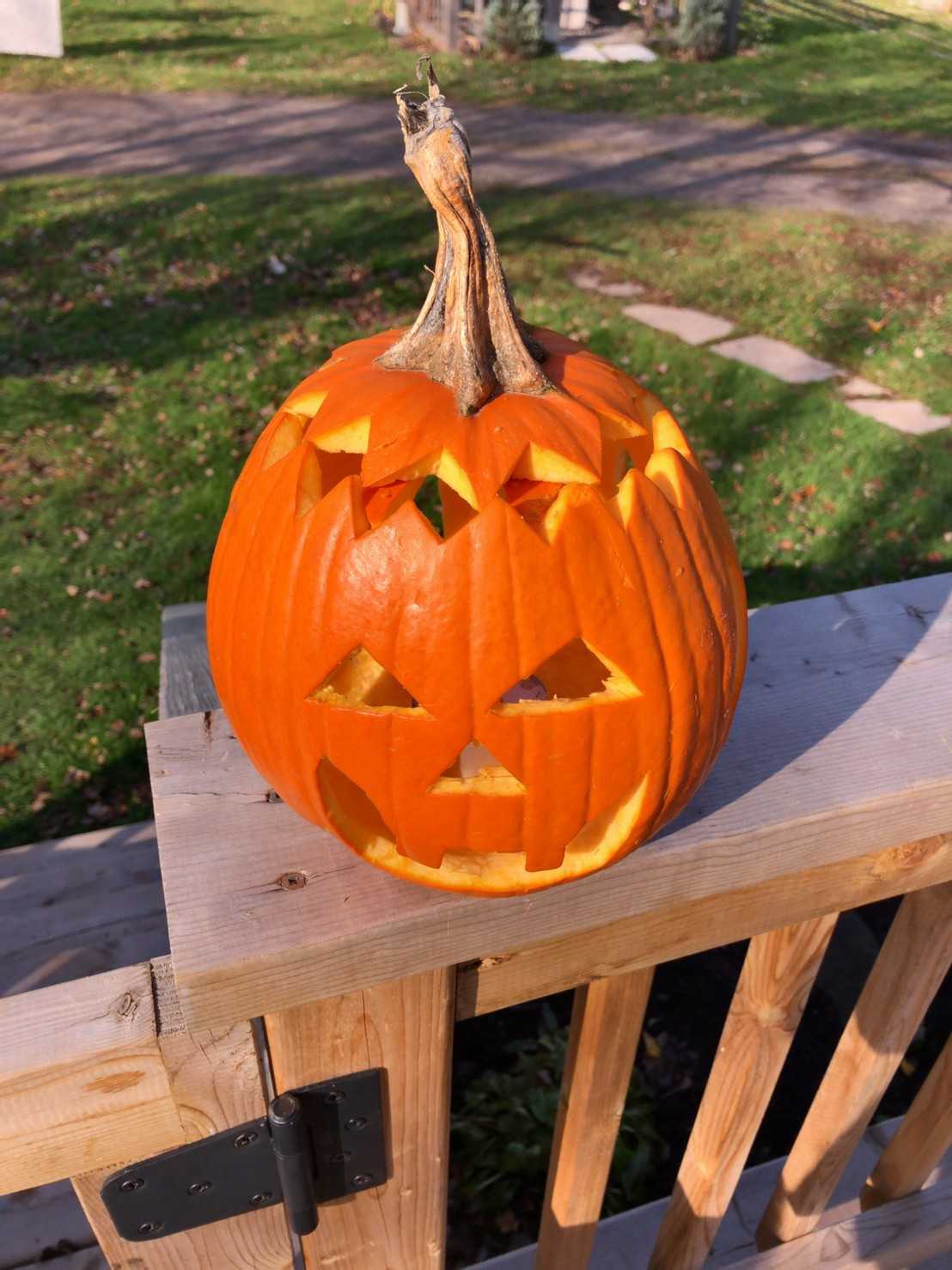 庭でくり抜いてジャックオーランタンを作った