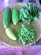 ゴーヤーの横にあるのは、モロヘイヤです。