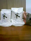 右にあるのが、米ぬかで、白米に精米して貰った物のです。