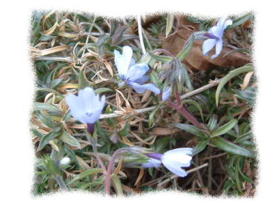 こんな寒さの中、庭先で芝桜の花が咲いているんです。