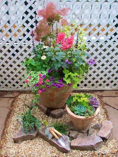 さる、5月13日~5月24日まで、二子玉川の高島屋の所属で国道246の瀬田の 交差点にあります、ガーデンアイランドで、コンテナガーデニングコンテストが ありました。 調度国際バラとかさなってしまい、さらに忙しい思いをしましたが、練習の為にも 参加してみようと思い、出品してみました。 おかげ様で、最優秀賞を頂き、景品のウィッチフォードの鉢をGETすることが 出来ました。テーマはラグジュアリータイム(植物との贅沢な時間)です。 スモークツリーのふわふわしたところが大好きなので、寄せ植えに是非 使ってみたいと思いました。 後は紫とピンクを多めに選び、本当はナスタチウムが咲いている筈 だったのですが、日当たりのせいかアクセントの色が見えなかったのが残念 です。 多肉植物は、以前ベランダで待機させていたものを植え込みました。 やはり、ポット苗のままとは比べものにならないほど、成長します。 地植えの植物が大きくなるわけです。 手前のピンクで小さな丸いお花は、高性のアルメニア。 ギガンチウムのミニ版のようで、可愛くて使ってみました。 これは、今種を採っています。今年の秋に畑にでも蒔いてみようかと考え中。 二子玉川のガーデンアイランド2F プロトリーフ さんには、ハンドスコップと グラスカッターが置いてありますので、こちらでも買うことが出来ます。 こちらに置かせてもらっているものは、皮のひもでぶら下げる事も出来るように なっていますよ。 下の写真は、作り立てほやほやの時です。 ナスタチウムが咲いているのと、ディアボロの葉が大きくなっていないので マーガレットの分量がおおいです。 スモークツリーはまだ、ふわふわしていませんね。
