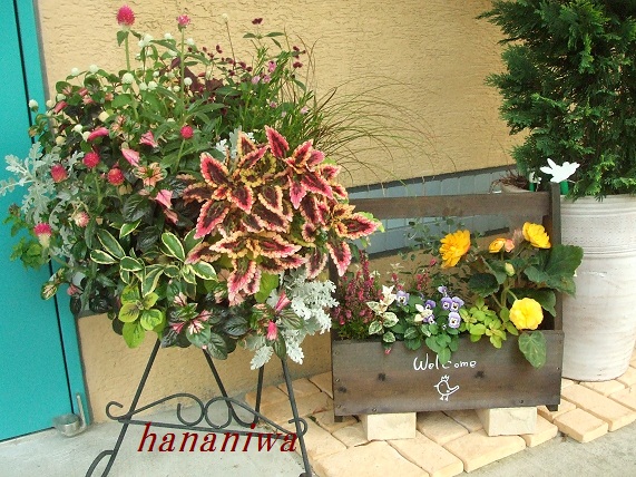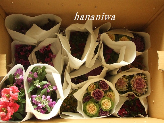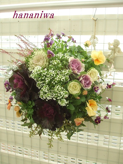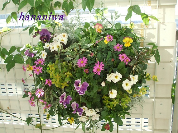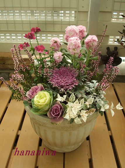 今日はまた、温かな11月の予報がされています 最高気温22度 最低気温17度 明日はもう雨の予報なので、お出かけは今日の方がいいかもしれませんね 今日は、1か月程前に整形外科医さんの玄関前に、ディスプレイした ハンギングのご紹介をします 10月7日にお届けした千日紅のハンギングです センニチコウのピンクと白や千日小夏など、ドライフラワーなどにもなる位の 植物達なので、まだ、元気そうです 良かったぁ~ この場所はあまり陽が当たらないので、お花物のもちがちょっと悪いです そこで、先日作っておいたディスプレイ用の寄せ植えをちょっと勢いが なくなったものと変えました また、取り替えのものを用意しておいた方が良さそうです こちらは、昨年の12月にエステのお店の前にディスプレイしました ハボタンのハンギングと寄せ植えです そして、昨日ハンギングを造ろうとまた、パンジービオラなどを 買ってきました 紫のフリフリパンジー 黄色に紫の縁取りのあるビオラさん 虹色スミレ ピンクエンゼル と ジュリアンシルキー バスケットに入れてみないとわかりませんが、ロングランのハンギングに 仕上げていきたいです こちらは畑の元気なセンニチコウ ストロベリー味のチュッパチャップスがこんなにいっぱいあったら 1か月程もつかしら・・・ 今日も見に来て下さってどうもありがとうございます コメントなど頂けるの、とても有難く拝見しています お返事はご訪問した時にさせて下さいね ブログランキングに参加しています 応援して頂けたらとっても嬉しく励みになりますここを ポチッと 応援してね~ にほんブログ村 ありがとうございました