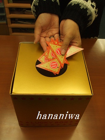 今日も、気温は上がらず晴れ時々曇りの予報です 最高気温17度 最低気温11度 先週からお知らせしていました、ブログランキング参加1周年記念の プレゼント企画に多数応募頂き、本当にありがとうございました 昨日応募を締め切らせて頂き、購入しておきました抽選ボックスと 抽選クジの準備を致しました 始めての経験なので、どのようにしたら良いかと考えていましたが ロフトに行って、抽選ボックスに応募の皆様のお名前を書いたくじを いれて、パソコン教室のスタッフの方にくじを引いてもらう事にしました 上の三角くじに、皆様のお名前を書いて、上からシールを貼ります 間違えないように、剪定ばさみ希望の方には黒で星印を付けました 皆様のお名前を記入したところです その後、シールを貼ったところです 準備完了で~す 先日作ったウォールバスケットにもサンタさんのピックと また、レースのリボンを付けました こんなアイアンのクリスマスツリーも何かに使えないかと買ってみました こちらは昨年作りましたクリスマスローズニゲルの寄せ植え 明日の抽選結果を楽しみにお待ちくださいねぇ~ 今日は、いつも伺っているお店の前の 寄せ植えの植え替えにいってきま~す 皆様の応援ポチが何よりの励みです 今日も見に来て下さってどうもありがとうございます コメントなど頂けるの、とても有難く拝見しています お返事はご訪問した時にさせて下さいね ブログランキングに参加しています 応援して頂けたらとっても嬉しく励みになりますここを ポチッと 応援してね~ にほんブログ村 ありがとうございました