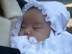 3歳3ヶ月&2ヶ月今日は、ゆーすけのお宮参りに行ってきました。お天気が良くてよかった~まずは、午前中にスタジオアリスに行って、記念撮影。行きの車の中で寝てしまったゆーすけは、お店に着いても全然起きませんでしたずっと寝ていて、撮影出来なかったらどうしようかと心配でしたが、とりあえず、ベビーベッドに寝かせて、ゆーすけの着物を選びました。それから、ゆいちんの衣装も選んだよ。ゆいちんも、和装にしました七五三の時も喜んで着物を着ていたし、また着たいってずっと言っていたのです。お店に入ったとたんに、「赤いの着たい!」って言っていたよゆいちんのヘアメイクや着付けに付き添っていて、ふとベッドのほうを見ると、パパもゆーすけもいない。あれ?って思ったら、スタジオのほうで、撮影の準備に入っていました。ゆーすけが起きたらしいです。外ではずっと寝続ける子なので心配だったけど、起きてくれてよかった~。パパにビデオカメラを渡して、撮影をまかせて、またゆいちんのもとへ。ゆいちんは、着付けの間、とってもおとなしかったです。お姉さんの質問にも、ちゃんと答えていたよ。そして、着付けが終わって、スタジオのほうへ。ゆーすけは、よく笑っていたみたい。途中で泣いたり、ぐずったりしたらどうしようと思ったけど、最後までご機嫌でした。我が家の子たちは、写真好きなのかしらゆーすけ1人の撮影の後は、ゆいちんとのツーショット。パパは、ずっとビデオを撮り続けていたけど、突然、「あれ?これって動いてない?」とか言い出して・・・が~んパパ、録画ボタンを押していませんでしたゆいちんの1歳の誕生日の記念撮影の時にも、同じ失敗したのに~。ゆーすけが1人で撮影している時に、見ていられなかったから、後からビデオを見るのを楽しみにしていたのに、すごくショックだよ。パパにまかせるんじゃなかったわぁ。ツーショットの写真も、すんなりと撮影が終わり、次は、家族写真を撮ってもらいました。パパやママも一緒に撮るのは、ゆいちんの1歳記念の時以来だから、すごく久しぶりです。そして、最後にママとゆーすけのツーショット。それは別によかったんだけどねその時に、ゆいちんに着替えようとお姉さんが話しかけていて、ゆいちんは、「イヤ~!!」って言っていました。着物が気に入ったみたいで、ずっと着ていたかったみたいです。洋装で撮るのも勧められたんだけど、パパが反対したのでやめました。その代わり、私服でゆいちんとのツーショットを撮ってもらいました。ゆーすけは、レースがついた白いカバーオールです。ゆいちんのお下がりだけどねゆいちんも、その服でお宮参りに行きました。退院の時と、お宮参りにしか着ていないので、もったいないです。かといって、普段は着れないもんね。ゆいちんは、JJのお洋服ママのお気に入りなのです。髪を、上のほうで二つ結びにしてもらっていました。ゆいちんは、「(トトロの)メイみたい?」って何度も、うれしそうに言っていたよ。撮影が終わり、写真選びの時には、ゆーすけが寝ました。何て手のかからない子なのでしょう~。それに比べてゆいちんは、最初は一緒に写真を見ていたけど、途中で、「おもちゃで遊びたい」って言い出して、1人でおもちゃのほうへ。・・・と思ったら、撮影用のブーケをどこから持ってきたのか、「見て見て~」って手にしていたり、撮影している他の人のところへ行ってしまうので、パパが追いかけていたよ写真は、良いのがたくさんあって、選ぶのが大変でした。結局、またたくさんお金を使ってしまいました2週間後の出来上がりが楽しみです。着物をレンタルして、ひとまず家に帰りました。そして、昼食を食べてから、神社へ行きました。神社では、ゆーすけはずっと寝ていたよ。ご祈祷をしてもらう時に、ゆいちんは神主さんに、「ちょっと寒いなぁ」なんて、話しかけていましたママの腕の中で、すやすや~全然起きなかったなぁ。ゆいちんは、スタジオでの撮影は喜ぶくせに、パパが写真を撮ろうとすると、逃げ回ってなかなか撮らせてくれませんでした。数少ないショットです。遅くなったけど、無事にお宮参りに行けてよかったです。ずっと気になっていたので、ひと安心これからも、すくすくと成長して欲しいです