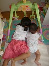 3歳8ヶ月&7ヶ月梅雨入りしたのかな?じとじとと雨が降っている1日でした雨が降っていると、ゆーすけを連れての幼稚園の送り迎えがとっても大変。少しの間でも、車に残していくのは心配で出来ないし、でも、抱っこして傘さして、ゆいちんと手をつなぐのも不便ゆいちんを幼稚園に送り届けてから、小児科に直行しました。しばらく病院に行くのは勘弁って思っていたけど、ゆーすけが便秘。6日も出ていないので、さすがに放っておけなくて。特に機嫌が悪いわけでもなく、母乳の飲みも悪くないので、様子を見ていたのだけどね。先生に診てもらうと、少しだけお腹が張っているとのこと。それで、浣腸してもらいました。ゆいちんが赤ちゃんの時も、5日くらい出ないことがあったけど、いよいよ病院に行かなきゃって思ったら、自力で出たので、浣腸は未経験。ゆーすけが初めてです。浣腸してもらって、しばらくお部屋で待機していると、ぶりぶり~出ました出ましたでも、6日もためていたわりには、少ないねって言われて、浣腸を3本もらってきました。・・・ママ1人で入れること出来るかしら。これからは、順調に出てくれたらいいんだけどなぁ。暑くなってきて汗もかくし、水分不足が便秘の原因かなと思って、昨日は、初めてマグで麦茶を飲ませました。遅っ!!!もう7ヶ月になるのに、すっかりマグを使うのを忘れていたのです母乳を頻繁に飲む子だし、離乳食の時には、スプーンで麦茶を飲ませていたので、それでいいかって感じで。2人目だと、本当にいい加減になっちゃって、反省。完母で、哺乳瓶で飲ませたこともないので、どうかしらって思ったけど、乳首のついたマグを見せたとたん、すごい食いつきなの。自分で持って、口に入れていましたすご~い。ゆいちんが、自分で口に持っていけない子だったので、ひたすら感動上向けていないから、自分では飲めていないのだけど、ちゅぱちゅぱとすごい勢いで吸っていました。ツボにはまったのか、キャハキャハと笑っていたよ。何がおかしい???新しいおもちゃだと思ったのかしら。下に落としてしまっても、自分で拾って、また口へ。すごい本能?だなぁ。上向けて飲ませてあげても、飲むのが下手で、時間がかかったわりに半分ほどしか飲めていなかったけど、満足そうでした。そのうち、慣れるかな。早くストローで飲めるようになると、便利になるのにね。紙が好きなゆーすけは、見つけると手を伸ばして、握りしめて遊んでいるんだけど、最近は、両手を使って、びりびりと破くようになりました。これも、ゆいちんと比べるからか、すごく早いような気がするよ。とっても楽しそうに、びりびり~。気をつけないと、大切な書類も破られてしまいそう。1人にしていると泣いて、ママをすぐに求めるゆーすけだけど、隣にゆいちんがいると、ご機嫌でいてくれます。ゆいちんが遊んでくれるわけでなくて、勝手に1人で何かをしているだけなんだけど、それを見ているだけで、うれしいみたい。「お姉ちゃん」の存在って、パパやママとはまた違うものなのかな~