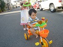 3歳11ヶ月&10ヶ月ずいぶんと涼しくなってきました。日中も、エアコンがいらなくなってきたよ~。一昨日~今日まで、パパがずっと家にいたので、朝、ゆいちんはパパと幼稚園へ行きました。それが、うれしかったみたい。迎えに行く時は、みんなで行って、パパとゆーすけが駐車場で待っていて、ママだけが、幼稚園の門まで迎えに行ったのだけど。今日は、「お父さんがいいの!!」って言って、追い返されそうになりました。ママで悪かったわね~帰ってきて、みんなでおやつ。アイスクリームを食べたんだけど、ゆーすけにはかぼちゃボーロ。自分で食べさせると、なかなか口に入らないので、ママが食べさせていると、「ゆいちゃんがする!!」ゆーすけに餌付けをしているみたいでしたしかも、自分の口にも結構入れていたしね。ゆいちん自身が食べたかったのねー夕方、お外へ。本当に涼しくなってきて、お外でいるのが気持ちいいです。ゆーすけ、三輪車デビューしたよ~。ゆいちんの1歳のお誕生日に買ったものなので、ゆいちんよりも、少し早いデビューになりました。今でも、ゆいちんが乗っているので、ステップをはずしているんだけど。それでも、怖がることなく、しっかり座っていたよ。「ゆいちゃんが乗るの」って言われて、すぐにおろされちゃったけどゆいちんには、もう小さいよね。来月のゆいちんのお誕生日には、ばあば・じいじから自転車をプレゼントしてもらうので、そうすれば、ゆーすけにこの三輪車を譲ってあげられるかな。でも、その自転車が、問題なんだけどね。今自転車を買っても、きっと小学校に行く頃には、もっと大きな自転車が必要になるよね。少しの間しか乗れないだろうから、出来ればゆーすけも使えるものにしたい!!なのに、ゆいちんは「ピンクのが欲しい」って言うの気持ちは分かるけど、ピンクにしちゃうとゆーすけが可愛そうだし。でも、ゆいちんの気に入るものを買ってあげたいとも思うし。こういう時、同性の兄弟だといいよね。結局、ピンクを買って、ゆーすけにはまた別のを買うことになるのかしら。あぁ、不経済小学校まで、自転車はお預けとかも考えたけど、幼稚園のママさんたちに聞けば、みんなもう自転車に乗っているみたい。補助輪をはずして乗る練習をしている子もいるみたいで、びっくり~。やっぱり、来月買ってあげようと思ったのでした