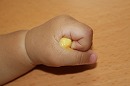 3歳11ヶ月&10ヶ月今日は、1日中雨でした。午前中は、ゆーすけとまったり過ごしていたよ。ゆーすけには、ゆいちんのおもちゃがいっぱいあるから、全然買っていなかったのだけど、少し前に、初めておもちゃを購入しました。木で出来た車のおもちゃがいいなぁって思って、探して見つけたものです。でも、ちょっと大きすぎたのか重すぎたのか、あまり食いつきが良くなかったんです。ゆいちんがマクドナルドのハッピーセットでゲットした、プラの青い車のほうが好きみたい。手に持ちやすいんだろうな。転がして遊ぶというよりも、手で持つほうが好きだったみたい。それよりも、ゆいちんのほうが夢中になっちゃってちっともゆーすけに渡さないし、どこかに隠しちゃうし。どれだけ気に入ったんだーって感じ。女の子なのに、車とか電車とか好きな子だからね~。ゆいちんのほとぼりがさめたようなので、再びゆーすけに触らせると、ゆーすけも少し大きくなったからか、楽しそうに遊んでくれたよ。ゆーすけが、自分でこのおもちゃが欲しいとか言うようになるまでは、多分ほとんどおもちゃを買うことがないと思うけど、(2人目は可愛そうだけど)1歳のお誕生日には、何か記念になるものを買ってあげたいなぁって思います後期健診に行った翌日(25日)に、7本目の歯が生えてきているのを発見。下2本生えている歯の右側から、白い歯がニョッキリ。ゆーすけ、噛みつき魔なので、ますます恐ろしい~。授乳している時は、滅多に噛むことはないんだけど、くっついてきて、服によく噛みついて、服だけでなくてそのまま手やお腹もガブリ。かなり痛いので、やめて欲しいんだけどなぁボーロを食べるのが上手になりました。親指と人差し指で、小さなボーロをつまんでお口に入れています。口から出そうになると、もう一方の手で押し込もうとしていて、とっても可愛い立ちあがる時は、今まではどこかにつかまって立っていたけど、今日は、どこも持たずに立っていたよ。日々成長しているんだなぁ。どこにもつかまらずに立っていられる時間も、日に日に長くなっているし。でも、油断すると、まだ転倒しちゃうから、危ないです。今日も、何度か後頭部を強打していました。大丈夫かしら
