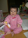 3歳10ヶ月&10ヶ月ゆーすけ、10ヶ月になりました最近は、何をしても可愛くて可愛くて、メロメロです。目が合うと、にこにこ~って笑うの。本当に癒されますハイハイが、とっても上手になりました。自由自在に、あちこち動き回っています。この間は、玄関から落ちましたヤマハに行こうと、ママが準備をしている時に、ゆいちんが、先に玄関で靴を履いて、待っていたのです。そのゆいちんを追いかけて行って、そのまま落ちたらしいです「よちよちよち、どすんって落ちたよ」だそうです。ゆいちんは、結構慎重だったのか、玄関から落ちたことがなかったのだけど、ゆーすけは気をつけなきゃいけないなぁ。階段も、ゆいちんはなかなか上らなかったけど、油断していたらだめですね。伝い歩きも、上達しています。どこでも、簡単に立ち上がり、わりとしっかりした足取りで歩いているし、果敢に手を離そうとしているので、1人で歩けるようになるのも早いのかな人見知りが激しくなるのかなって思っていたけど、そうでもないみたい。今日も、お外でよその人に愛想を振りまいていました。外では、いつもご機嫌なので助かります。5,6本目の歯が生えてきました。上の前歯が2本同時に生えていたのだけど、その両隣りに、またまた2本同時に生えてきたのです。よくママの服を噛むのですが、その時に、一緒に手や足を噛まれることがあって、かな~り痛いですゆいちんは、こんなことはなかったはずなのに。(おっぱいは噛まれたことあったけど)離乳食は、よく食べるようになってきました。一時期は、お粥を拒否していたけど、また食べるようになったよ。7倍粥をつぶさずに食べられるようになり、しらすなんかも細かくしなくても、そのまま食べるようになったので、ずいぶん楽になりました急がなくていいし~ってのんびりしすぎて、昨日から、やっと卵黄を食べさせはじめたところですお肉もまだなんだよね~。赤ちゃんせんべいは食べないのだけど、ボーロは好きみたいです。今日も、かぼちゃボーロをあげると、小さな粒を手でつまみ、一生懸命食べていました。この不器用な食べ方が、また可愛いゆいちんは、自分では食べなかったので、とっても新鮮です。ドアを閉めて、別の部屋に行ったりすると、ドアの前に座り込んで、かなり激しく泣きます。怒り泣きかしら。部屋に戻って、抱き上げると、すぐに泣きやむんだけどね~。泣きながら後を追われるのはきついけど、にこにこ笑いながら、追ってくる時はとっても可愛いですいつまでも、このままでいて欲しい気もします。でも、あっという間に大きくなってしまうんだろうなぁ・・・。ゆいちんは、まだ咳をしています最初は小児科に行ったけど、どうも鼻がつまっている気もして、先週の木曜日に、耳鼻科へ。そして、昨日も行ってきました。喉はきれいらしくて、鼻水が奥のほうでたまっているみたいなので、咳もそのせいみたい。耳鼻科でもらったお薬のほうが効くみたいで、少しはましになってきている気がします。明日は、幼稚園でお誕生会があるので、とっても楽しみです「今日は、リサーハルしたよ」だって。「リハーサル」を間違えて覚えてしまったみたいです