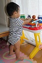 3歳11ヶ月&10ヶ月赤ちゃんって、日々成長しているのが、目に見えて楽しいですね。今では、どこにもつかまらずに、しばらく立っていられるようになりました。おもちゃとか、何か手に持っているほうがバランスがいいかもひっつき虫なゆーすけ。ママがキッチンにいると、すぐに高速ハイハイでやってきます冷蔵庫に貼ってあるマグネットを次々床に落としたり、豆いすを手押し車のようにして、押して歩いたり、その辺の物で遊んでいるうちは、まだいいのだけど・・・。ママの足にしがみついてくると、あぁ大変。後ろから両足につかまって、ママのまた下に入ってくるのですが、背が伸びてきて、ママが背伸びをしないと、頭がぶつかるようになっちゃった。キッチンに入って来られないように、段ボールでバリケードを作ったら、大泣きされちゃって、あまりにうるさいので、撤去しました。ママが移動すると、ママの足を持ったまま、一緒に歩くゆーすけ。「いち、に。いち、に」と、運動会の競技のようです物に執着するようになりました。今までも、持っているものを取り上げると泣いたけど、今では、泣き方が違います。怒って怒って、大変なのー。怒り泣きしながら、取り返しに来ようとするんだもん。歯磨きを嫌がるようになりました。最初は、磨かせてくれていたのに、最近は歯ブラシを持って行くと、自分で触りたいらしくて、ママが磨くのを拒否。手を伸ばしてきて、歯ブラシを奪います。それで、しばらくは口に入れてもぐもぐしていました。でも、最近はすぐに下にポイッ。前にも書いたけど、ますます何でも下にポイしちゃうようになって、テーブルの上に置いてある、手の届く範囲の物は、全部下に放ってしまいますフタ付きのゴミ箱の、フタを開けるようになっちゃったし、力がなくても開く扉は、自分で開けちゃいます。この間は、パパママが和室にいて、ゆいちんとゆーすけがリビングにいた時に、ゆいちんが、和室に入ってきて、引き戸を閉めちゃったんです。「ゆーすけを1人にしたら、泣いちゃうよ」って言っていたら、自分で、引き戸を開けて、和室に入ってきました。これには、びっくり~いつの間にか、出来ることがどんどん増えているみたいです。そして、一丁前にやきもちをやくようになりました。まだ10ヶ月なのになぁ~。ゆいちんの髪を結っている時や、髪をドライヤーで乾かしている時など、ママとゆいちんが密着していると、すかさずやってきて、間に入ってくるのです。ママにしがみついてきて、ひどい時なんて、怒りながら、ゆいちんを押したり叩いたりするのパパとゆいちんが遊んでいる時は、おもしろそうに見ているだけなのに、ママだとだめなのね。取られちゃうって思うのかしら。今からこんな調子だと、これからますます大変になるかも~