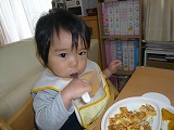 4歳3ヶ月&1歳2ヶ月気管支炎が長引いていて、ゼーゼー言っていたゆーすけですが、やっとおさまってきました。今日、小児科に行き、胸の音がきれいになっていると言われて、ひと安心まだ喉が少し赤いので、シロップだけ処方されました。その後、耳鼻科に行ったのだけど、鼻水も少なくなってきているし、もう大丈夫って言われるかなって期待していたのだけど・・・。何と、右耳が中耳炎になっていましたーーーゆいちんは何度も経験しているけど、ゆーすけは初めてです。先週の土曜日には、鼓膜はきれいって言われていたのになぁ。日曜日と水曜日に熱が出たことを言うと、そのどちらかで中耳炎になったのではとのこと。炎症はひどくないけど、水がたまっているらしいです。またしばらく、耳鼻科通いが続きそうです。はぁ~でも、元気はあるんですよ~。病院と幼稚園の送り迎えの時以外は、ずっと家にこもっていますが、部屋の中で、動き回っています。特に、ゆいちんが幼稚園から帰ってくると、テンションアップゼーゼー言っている時も、ゆいちんについて回って、おおはしゃぎだったもん。だから、余計に治らなかったのかしらそして、食欲がすごいんです。本当によく食べるようになりました。特に、おやつゆいちんが、3時になるとおやつを要求するのだけど、同じように、キッチンにやってきて、お菓子を置いている場所の下に立ち、上を見上げながら、やたらとアピール。今は、まだゆいちんと同じものでなくても大丈夫みたいで、赤ちゃんせんべいを手渡すと、うれしそうにリビングに戻っていきます。いつまで、赤ちゃんせんべいで満足してくれるかしら食事も、椅子に座らせて、エプロンをかける前に、お皿から手づかみし、口に入れています。早っ昨日の夕食。かなり雑ですけどおにぎり・ハンバーグ・ブロッコリー・かぼちゃ・野菜スープ(にんじん・たまねぎ)野菜スープ以外は、全部手づかみで自分で食べています。ゆいちんと大違いだわ。お茶碗に入れたご飯よりも、おにぎりのほうが好きみたい。両手に1つずつ持って、次々食べていることもあります。今日のお昼も、同じくらいのボリュームの食事だったのだけど、どうやら、この量では足りないらしいです。何もなくなると、怒って、ママにフォークを差し出してくるのです。まだ食べたいって感じで。昨日のかぼちゃが残っていたので、追加したけど、それもあっという間に食べて、またまた怒っているの。まだ足りないのかなぁ。適量が分からないです