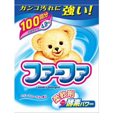 【税込2,980円以上で送料無料】11/8(月)am9:59まで(洗濯用洗剤)ニツサン石鹸 ファーファ洗剤 4.0KG【D】 □□□価格:1,200円昔ながらのレギュラー洗剤。一回の使用量が40g(水30Lに対して)でたっぷり100回洗えるメガサイズ!酵素のパワーでガンコな汚れもすばやく分解洗浄し、天然柔軟成分が衣類をやわらかに仕上げます。●内容量:4.0kg●用途:綿・麻・合成繊維用●液性:弱アルカリ性●成分:界面活性剤[20% 直鎖アルキルベンゼンスルホン酸ナトリウム、純石けん分(脂肪酸ナトリウム)]、工程剤(硫酸塩)、アルカリ剤(炭酸塩)、水軟化剤(アルミノけい酸塩)、再付着防止剤、柔軟剤、蛍光増白剤●メーカー:ニッサン石鹸お勧めリンク田中謹也 視力アップ法