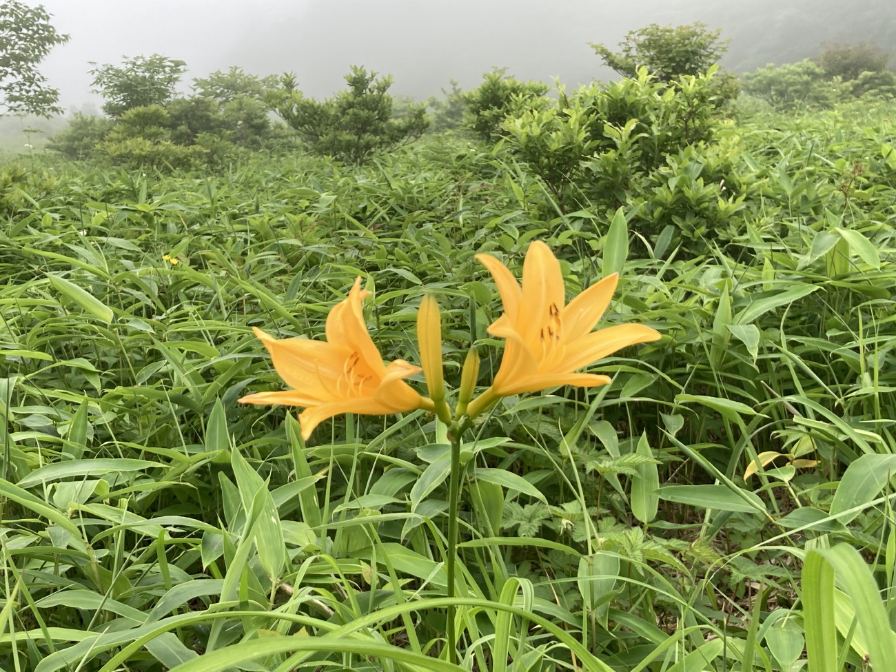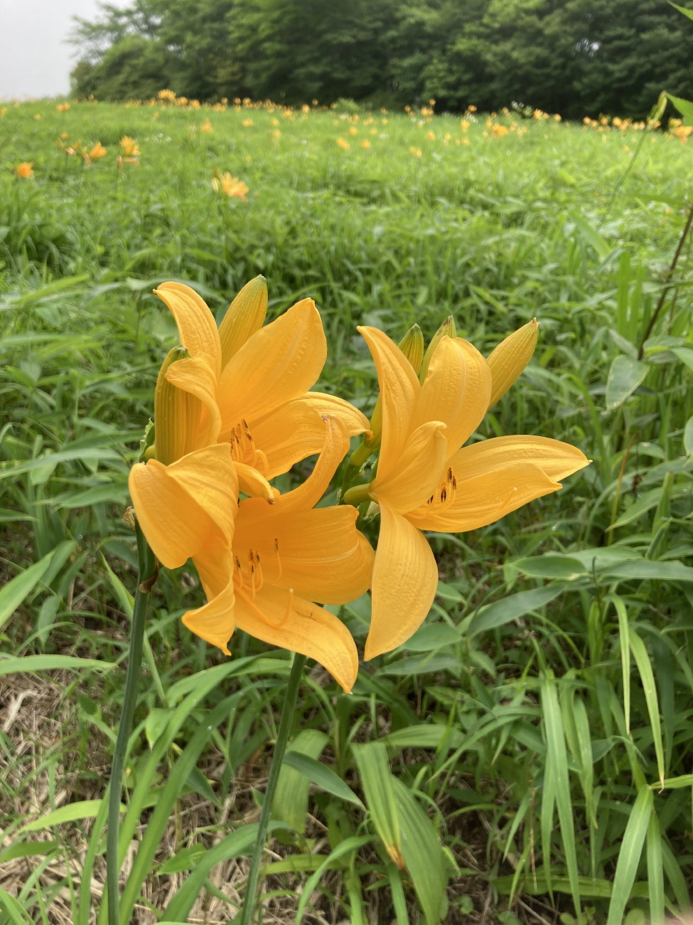 キスゲ平の上の方はまだ草の緑色が目立っていましたが、もっと高い場所まで一面キスゲ色に覆われるのも間もなく・・・楽しみです。