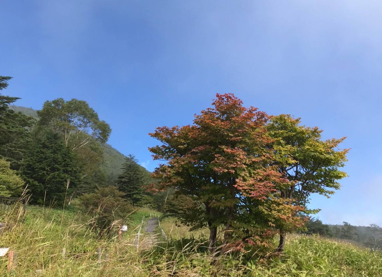 木の葉がうっすら色づき始めていて、下界はまだ残暑が続いていても山には秋の気配が漂い始めたようです。