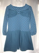 あぁぁ~。前回、久しぶりに日記を書いたら、レッツ手芸同好会のバナー貼り忘れた~ぁ。とほほ。。。ま、ここで今日2本目の日記をUPするから、いっか~。基本、放置なこのブログに、1日に2回もUPするなんて初めてのことです。さて、そのレッツ手芸同好会の、初回のお題である「自分のために作った服」。バザー用の小物やらこども服やらにまみれていましたが、ようやく自分服作りました。 パターン:クルールさん ナチュラルワンピース 9号 使用生地:ニット工房さん ダンボールニット ブルー杢クルールさん定番のワンピです。先月、アンケートに答えると好きなパターン1点を割引購入できるセール?があり、以前からチェックしていたこちらを購入しました。まずは、ニット工房さんで購入してあった生地で、暖か系ホームワンピを試作。前開きなんだけど、あちこちのブログを拝見してると、開きが無くてもOKそうだったのでとりあえず見せかけの前たてつけて開き無しで。 ボタンは手作り工房 MY mamaさんのボタン福袋から。っていうか、前たての端、曲がってるし。デフォルトは、襟ぐり布は上載せでステッチ仕上げで、そこが可愛いんだけど、このダンボールニットさん、しっかり厚みがあってアイロンで丸~く成形できる自信が無くて、見返し処理&ステッチ押さえに変更。・・・ってか、こんな画像じゃ全然可愛くないですね・・・。おばさんの割烹着チックに見える。いや、実際おばさんなんだけども。本当はね、胸にダーツがあって、こんなにズドーンとしてなくって、もっとすっきりなんだけど~。えーと、コレもあんまりシルエットわからないけど(汗)、ちょこっと着画です。 ダメだ、コレじゃますます伝わらない・・・。クルールさんのサンプルと違いすぎる~。しかも、ポケットのチロル、余計だったよなー。取っちゃおうかなぁ。でも面倒だなぁ。しかしまぁ、このワンピが重宝しているの。あちこちで書かれているように、ワンピ1枚で着るには短め丈なんだけど、お母さんの日常的には、長T&レギンスの上からパッと着るのにちょうど良い感じ。半そでなんで、家事の邪魔にもならないし。ってことで、早速もう1枚作ったのですが、それはまた次回~。