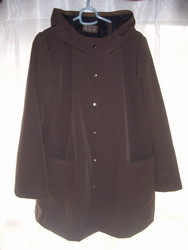 服地・布地のマツケさんの撥水生地 裏起毛 ブラウン 2mカットで、自分用のカッパを作りました。 生 地:服地・布地のマツケ 撥水生地 裏起毛 ブラウン 2mカット パターン:ソーイングナチュリラ(vol.3) フードジャケット雨の日の長女の園バスの送り迎え時、自分は大き目の傘をさして普通にコートorジャケット、長女&次女はそれぞれ小さな傘をさしてカッパを着ているのですが、次女がまだ傘が上手にさせず、斜めに傾いでしまう傘のてっぺんを上から持ってあげる事が多く、いくら大きな傘をさしていても袖が濡れてしまっていたので、カッパが欲しかったのです。服地・布地のマツケさんでこの生地を発見して、これなら安いし、裏起毛なら暖かそう!と2枚購入。手元に届いたら、厚めでしっかりとした良い生地で嬉しくなりました。マツケさんの「激安カット生地」、掘り出し物が沢山あります。他の方のレビューにもあったとおり、表は明るめのと言うか普通のブラウン=茶色。確かにもう少し濃いこげ茶の方が良さそうだけど、カッパだもん全然オッケー。裏の起毛は、こんな感じ。明るめに写ってしまったけれど真っ黒です。 さて、パターンをどうしよう…と、パターンショップをウロウロしたものの、レインコートはあまり無く、コート系のパターンは結構良いお値段…。って言うか、作りたいのは「レインコート」って言うか、カッパだし。もったいなーい。手持ちのソーイング本で使えそうなものをパラパラ探し、ソーイングナチュリラ(vol.3)のフードジャケットでいいじゃん!と。ただし、カッパとして着るにはちょっと着丈が短めに感じたので、10cm伸ばしました。その際、元がAラインの裾広がりなデザインなので、単純に伸ばすと更に広がってしまうと思い裾幅はそのままで、丈を伸ばし、脇のラインを引きなおし&裾も適当につなげちゃいました。厚みがありしっかりとした生地ですが、針は12号、糸はシャッペスパン#60でいけました。4枚とか重なりが多いところはちょっと微妙な感じでしたが、何とか大丈夫。そしてこの生地。更に嬉しいのは、切りっぱなしでオッケーなこと!!素晴しい~。端の始末が要らないので、サクサク進みました。本では(ジャケットなので)フードが2枚仕立てになっていましたが、カッパなので省略。でも、いくら切りっぱなしOKでもフードの内側がそれじゃちょっと素っ気ないかしら…と、手芸ナカムラさんの水玉バイアス コゲ茶で、縫い代を隠すようにぐるりと縫いつけました。 ボタンは、手持ちのアメリカンホック13mmAGにしようとしたものの、厚みでちょっと不安に。恐る恐るマルチプライヤー(パーツ付)で付けてみたら、しっかり付きました。ホッ。面倒くさがりの私は、生地がしっかりしてるので見返しの接着芯も省略したからいけたのかな。芯貼ってたらアウトかも。そんな素敵な生地ですが、難点はアイロンで折り目が付かないこと。ポケット付けにちょっと困り、仕方なくまず縫い代を折った状態でポケットだけでステッチし形をつくり、出来たポケットをコバステッチで縫いつけました。ダブルステッチのように見え、結果オーライでした。 さて出来上がったカッパ。上出来、上出来~。撥水も十分です。しかし一つ失敗。アームホールがキツめで、下にあんまり着込めなかった…。フリースプルオーバー位はいけるけど、フリースJKはキツイ~。腕が動かせない。年とともに二の腕とか腰周りとか、トホホな部分に肉が付いてきたせいか(涙)。ま、幸い暖かい地方なので、下にそんなに着込むことは無いだろうって事で良しとします。と言うことで、調子付いて、ソーイングナチュリラ(vol.3)のイージーパンツのパターンでカッパズボン(っていうのかしら?)も作成。カッパなんでポケットも省略。裾を絞れるようサイドにボタンホールを作りゴムを通しました。あまりに単純なものなので画像も省略です。この上下で、子供の雪遊びにも行ってきました。元々スキーはやらないし、子供が小さいうちにソリ遊び場に年1~2回行くかどうかなので大人用ウェア買うのもったいないなぁと思って。暖かい日だったので下に着込めなくても大丈夫。撥水もバッチリ。大正解でした。1000円でカッパ上下が出来たなんて嬉しい~。このカッパは、活躍しそうです。ま、ズボンはあんまり普段は着ないでしょうけど…。ちなみに、だんなのカッパズボンは、更に安い撥水ゴム引き ≪ブラック≫ 2mカットで作りました。 洗車なんかにも使いたいらしいので、後で「ポケットが無い」とか不満が出ないよう前後にポケットもつけ、裾のゴムにはコードストッパー 渋金 2個入も付けておきました。ゴム引き、よく考えないで購入して作り始めてしまったんですが、アイロン効かないし、ミシンの布送りは悪いし、ちょっと苦労しました。だんなには「大変だったわ~」と、恩着せがましく渡しておきましたが、普段、娘達&自分のものばかり作っているので、だんなは喜んでくれました。ちょっと性格悪い