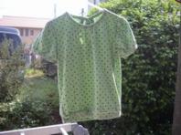 えー、またまた更新をサボっておりましたが、先週21日にようやくミシンが帰ってきました~。***以下、愚痴***2~3日の予定があまりにも遅かったので電話して催促。19日:「3連休してたんで~。明日、届けます」20日:夕方になっても音沙汰ナシ 「すみません、明日、届けます。行く前に電話します」21日:連絡も無いまま午前中終了→キレる 「2、3日っていうのがこんなに時間がかかって、 しかもそっちからは全く連絡が無いってどういうこと!? 何様!?」・・・てな内容を少し大人の口調で抗議。 「すみません、至急連絡を取って・・・」で30分後に届いた。・・・1週間以上も黙って待ってやったのが間違いだった。そもそもミシンを買う時、ネットで買おうとした私に、「機械モノはあたりハズレがあるから修理を考えて実店舗で購入すべき」とダンナが反対し、地元の口コミサイトで評判がよかった隣市のミシン屋で買ったんだけど・・・。ミシン屋対応悪過ぎ~。口コミサイト、アテにならん!!ロック買う時には絶対ココでは買わない!(←いつ?)***以上、愚痴終了***で、帰ってきたミシンで縫ったもの。 パターン:one's one スイングプル 生 地:左=綿ボイルドビー生成 地元の生地屋さんで購入 右=手芸ナカムラさん 綿プリント生地白xブルー系2枚ともなんだかわからない画像ですね・・・。着るとこんな感じです。 改めて見ると、なんかこの柄、テキヤさんっぽくない?画像では紫っぽく見えるけど、実物は青系でまさにテキヤ風味。(涙)前ヨーク下にタック、後ろはタックなし。身頃も袖もふわっとビッグサイズ。襟ぐりも袖ぐりも広いんでインにキャミorタンク必須ですが噂どおり風が通り抜けて涼しい~。次々と2着作ったあたりに、お気に入りぶりがあらわれてますね。この暑さに対応すべく、更に作り足したい。ただビッグサイズなんで生地選びを間違うと広がってキケンかな。薄手で広がり過ぎないモノがよさげです。デフォだと着丈が短くて、皆さん丈を足されていたんで生成は丈を7cm、テキヤ風味は丈8cm&袖2cm延長しました。ミシンが帰ってきて嬉しさの余り夜な夜な爆縫いしてます。(といっても、縫うの遅いからたいして縫えてないんだけど)アレもコレも作りたいものが山ほどあるのに、なにせ夏休み。連日娘達をプールに入れたり、友達と遊んだり・・・。しかもこの猛暑の中エアコンが壊れてしまい(!)30年ぶりくらいにあせもが出来てしまいました・・・。母も夏休みが欲しいなぁ。