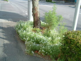 連日の暑さもようやく峠を越した感じです。暑い暑いといいながらも夜になるとほっと一息つける気温になるのは北国の夏。例年は夏枯れになってしまうアリッサムが今年は元気です。夕方の水遣りの時に街路樹の下のアリッサムにもたっぷりの水。この分では夏枯れせずにますます花の勢いが付いていくのではないかと楽しみです。