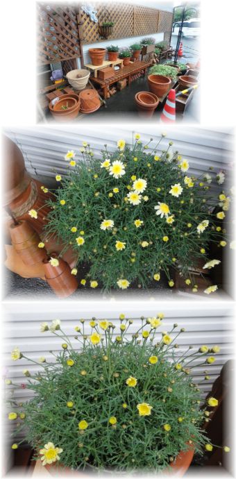 アズーロコンパクトのピンクはお花が多すぎて咲ききれない状態です。全部ピンクになるくらい咲いてくれるでしょうか。スカイブルーもようやく咲きだしました。今日は久しぶりにテラコッタドールの手入れもしました。A,Bはお手製のものですがAの帽子を壊したままだったのでメカルドニアのポットを飾ったり、ごしごし洗ってあげたり、お天気がいいので気持ちよく楽しいガーデニング日和でした。今日は今季初めての夏日25.5℃を記録しました。日照時間も10時間を超え、最高気温20℃以上が今日で3日目、お花も勢いが付いてきました。手入れしていなかったブリエッタのホワイトとデュエットローズをようやくピンチしました。これで少しモリモリと大きくなってくれると嬉しいです。今日のお花紹介は綺麗な黄色のマーガレット「ソレミオ」と真っ赤なケイトウのお花、秋までに大きくなってほしいので大きなテラコッタに植え込みました。いつもご訪問いただきありがとうございます。日本ブログ村ランキング参加中です。 よろしかったらクリック↑して応援してね!
