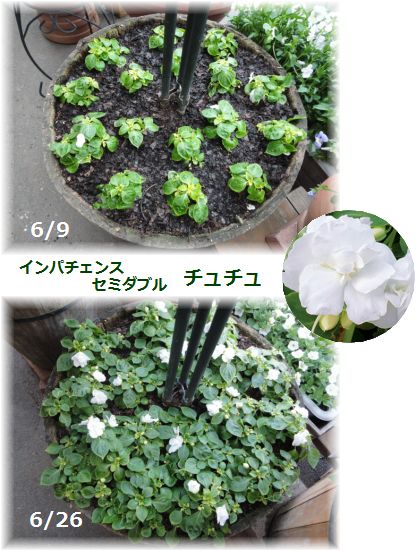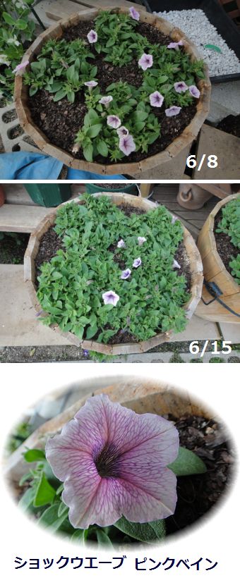 今日は少し暖かで最高気温19.9℃ 最低気温は7.8℃(4:23)まで下がりました。連日の低温と日照不足でさっぱりお花が大きくならないと気になっていましたが過去の画像と比べてみると結構大きくなっているのですね。ショックウエーブはこの大樽に植え込んでたった1週間しかたっていないのですがこんなに伸びてました。さすがショックウエーブ。北米人気No.1ブランドのペチュニア。這性が特に旺盛なのだそうです。どんどん広がっていくようです。こちらは3週間たったサフィニアです。寒い割には成長がいいのです。今年は少し気前よく液肥をあげているからでしょうか。メインガーデンへの引っ越しも間近です。実生のインパチェンスはさっぱりお花が咲きません、蕾はたくさんあるのですよ。ウオールバスケットももう少し広がってスリットが隠れなければちょっと見苦しいです。購入苗のダブルインパチェンスです。純白のお花が咲きだしました。こちらはもっとゆっくりでいいのですが・・・、いつもご訪問いただきありがとうございます。日本ブログ村ランキング参加中です。 よろしかったらクリック↑して応援してね!