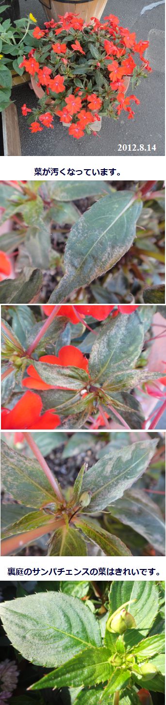 このサンパチェンスは大きな鉢に移し替えてからメインガーデンで過ごしています。最近とても葉が汚くなってしまいました。裏庭のサンパチェンスはきれいな葉です。ハダニの被害のような症状です。ルーペでのぞいてみました。いました!ハダニです。さっそく薬で退治することにしましょう。元気になってほしいな~。1昨夜から雨が降り続き、かなりの雨量だったので今朝の水やりは大丈夫と思ったのですがお昼ごろに覗いてみたらさあ~大変、葉ボタンがお煎餅のようにぺったんこ。大慌てで日陰に移動し、水やり、葉水をしました。夕方には元気に回復、よかった~。ホッ雨を避けて玄関フードに避難していた「アップルブロッサム」は、涼しかったようで元気にお花が咲きだしました。昨日の最高気温は23.2℃、インパチェンスの仲間たちは暑いのが苦手です。いつもご訪問いただきありがとうございます。日本ブログ村ランキング参加中です。 よろしかったらクリック↑して応援してね!