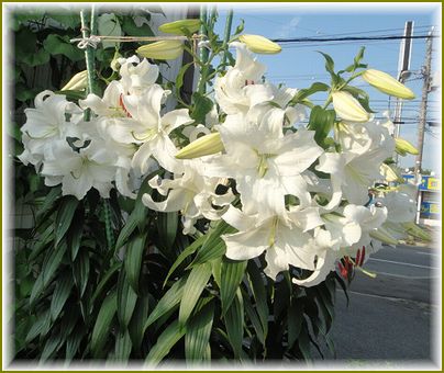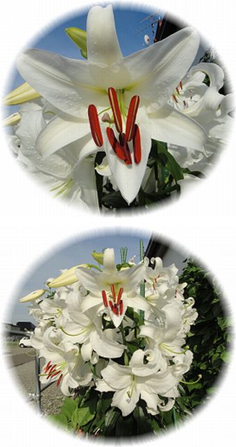 今朝は思いもかけない雨降り、だんだん本降りになってしまいました。その雨の中、カサブランカに会いに行きました。そして感動!毎日朝一でカサブランカの開花を楽しみにしていたここ数日間でしたが今朝、ようやく開花しました。雨のしずくでうつむき加減に三輪咲いていました。これからたくさんたくさん咲いてくれます。急な雨降りだったのでお花達は避難もできずそのまま雨に打たれました。夕方には立ち直ってお花もしゃんと立ち上がって咲いてくれました。雨で傷んだお花の始末が大変です。いつもご訪問いただきありがとうございます。日本ブログ村ランキング参加中です。 よろしかったらクリック↑して応援してね!