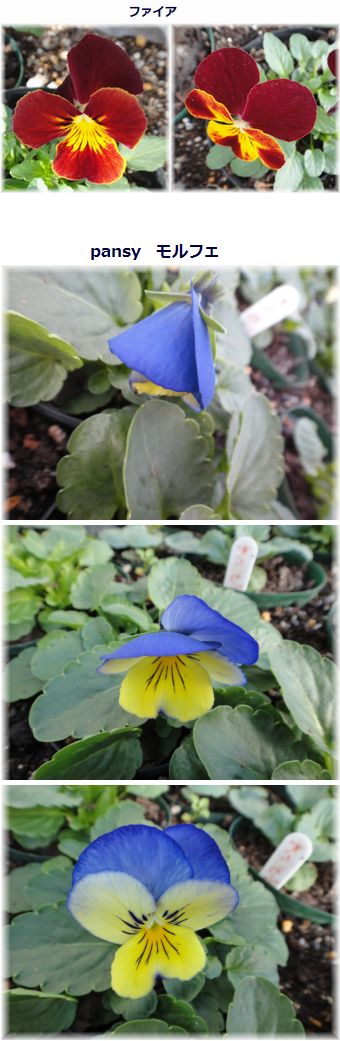昨日からトンネルを開いて日向ぼっこ、今日は暖かなので花弁も元気に広げました。ラベルを間違えて忘れていた「ビビ ファイア」が開きました。名前の通りたくさん集まると燃えるような塊になります。「モルフェ」もようやく開きました。全開するまでだいぶ日数がかかりました。一度育てたかったパンジーです。ビオラには色幅があるのがあって私は色幅のあるタイプがお気に入りです。見元ビオラの「あかずきんちゃん」の子孫です。さまざまな色が出てきて色幅が豊富になります。気温の上昇とともにもっと色幅が膨らみますが、今日のところはまだ色幅が小さいです。こちらは大好きな「ソルベオレンジYTT」このビオラの色幅はとても豊富です。季節の移ろいとともに美しく変化します。どのような色が秘められているのだろうといつもワクワクするビオラです。いつもご訪問いただきありがとうございます。日本ブログ村ランキング参加中です。よろしかったらクリック↑して応援してね!