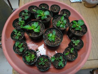 10月21日に蒔いたカリブラコアの芽が窮屈そうに伸びています。今日は雨降りで戸外の作業ができず、家の中の苗たちのお世話をしました。今年はどの冬越し苗も遅くまで戸外で過ごしたのですが家の中に引っ越したらめきめき葉を伸ばし始め、お花も咲き出したり・・・やはり暖かで気分がいいのですね。とても元気なアズーロコンパクト、スカイブルーとピンクの2種類です。当初この冬越しは計画にはなかったのですが切り戻した花穂を挿しておいたらさし芽がグングン伸びて立派になりました。今まで冬越しの挑戦はことごとく不成功に終わったのですがこの様子ではひょっとして長い冬場を乗り切ってくれそうな気もしています。こちらはバーベナ、処分しようとしたらあちこちから根が出ていたので株分けしてみました。バーベナは4種類あったのですがどのお花だったかは不明なのです。いずれでも素敵なお花が咲いてくれたので春まで元気でいてくれたら嬉しいです。インパチェンスも毎年冬越しのメンバー、ところがいつも途中でだめになってしまうのです。今年はどうなるでしょうか。いつもご訪問いただきありがとうございます。日本ブログ村ランキング参加中です。よろしかったらクリック↑して応援してね!