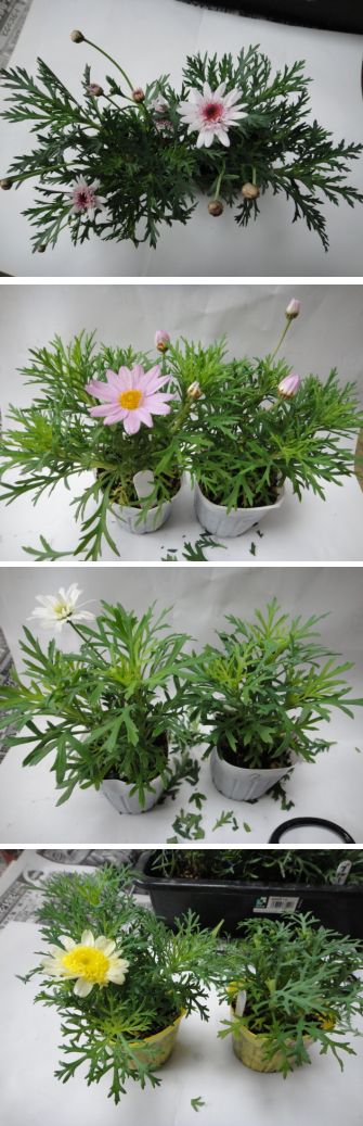 秋口に挿し芽にして来年用に引き継いだマーガレットが咲きだしました。冬越ししながらたくさん増やしていく予定です。ピンチして親株を充実させます。昨年の親株は伸びすぎて失敗だったので強ピンチにしました。マーガレットのオールメンバー、全部で14種類です。今年よりもっとに賑わったマーガレットガーデンができそうです。これからさし芽を作ってマーガレットガーデンに備えます。いつもご訪問いただきありがとうございます。日本ブログ村ランキング参加中です。 よろしかったらクリック↑して応援してね!