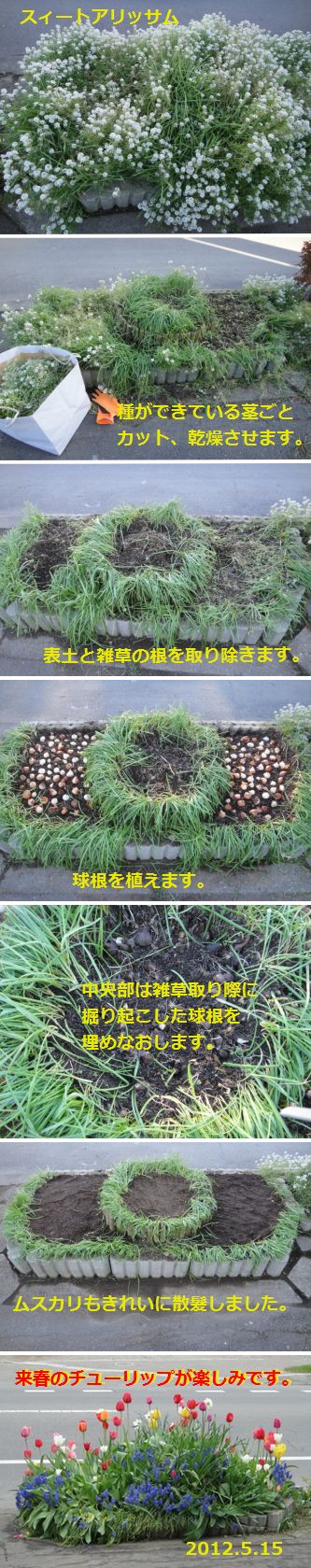 今日の朝はとてもいいお天気、でも秋の空は気まぐれですね。お日様のご機嫌次第で暖かくなったり、冷え込んだり、北西の風が枯葉を運んできます。風が静かなうちにと朝早く夫と長~いトンネルの不織布を張りました。まだ部分的に仮止めの状態、風よけにビニールも手前半分だけ張ります。とりあえずこれで安心、小さなトンネルは使い古しの不織布を使って作ります。隣の貸事務所の歩道の植え込み(ナナカマド)にアリッサムとマリーゴールドを植えました。今までは草ぼうぼうで犬のトイレに利用されていたので、きれいにしようと今年から始めました。お花たちもそろそろ終わり、そのまま冬を迎えるのは見苦しいので整理しました。今まで草ぼうぼうだったので土がよくありませんでした。アリッサムは我が家のミニ花壇に比べるとかなり見劣りしましたが、マリーゴールドはず~っと咲き続けました。でも肥料不足でお花が小さくなってきましたね。来年はもっとしっかりお世話しましょう。茎ごと刈り取ったアリッサムのお花は乾燥させて来春に種まきします。こちらが我が家のミニ花壇のアリッサム、まだ十分綺麗です。街路樹が伐採されて以来、いつもお花が咲いているので街路樹の植えなおしはここだけ避けてくれます。ゼラニウムもそろそろ室内管理をしたほうがいいのですがまだ軒下と玄関風除室で過ごしております。元気に咲いているアイビーゼラニウム。いつもご訪問いただきありがとうございます。日本ブログ村ランキング参加中です。 よろしかったらクリック↑して応援してね!