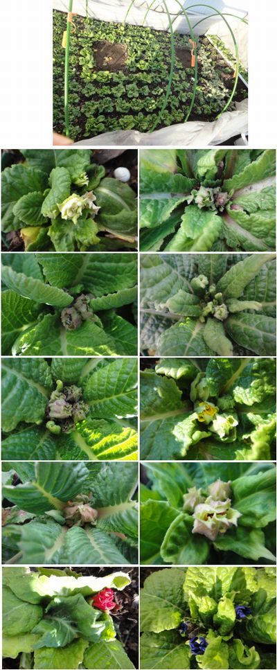 今日はよく晴れ上がり日照時間が7.9時間もありました。風もなかったのでとても温かく感じられ、昨日より気温が高いと思っておりましたが気象庁のデーターでは最高気温は3.6℃ でした。今日は不織布トンネルのお花たちもお日様のエネルギーをたっぷりもらいました。今日はプリムラポリアンサのお手入れです。植え替えた時に追肥をやったのですが今日は追加です。コロコロとしたIB化成肥料を施肥これで来春まで大丈夫でしょうか。今回与えたのは少し長持ちするものです。同じIB肥料もメーカーによって有効期間が違うのですね。5月1日に種まきした株にたくさんの蕾が上がってきました。今年中にはだいぶ開花してくれるでしょうか。今年はブルー系の開花がすでに始まっております。 例年開花が早いイエロー系がようやく色が見え始めました。こちらは交配のタネが熟するまで待って7月9日に蒔いた株です。まだ表土が見えている状態で花芽も見えません。約2カ月の差があるのですから仕方ありませんが、根の張りが十分であってほしいと思っています。冬期間は凍結防止のために水やりを一切せずに苗床に根を伸ばして水分を取り込んで生きてもらうのです。元気に春を迎えてほしいので腐葉土でたっぷりマルチしました。今日のHPの更新は「小さな花宇宙:四季彩々10月の庭」をアップしました。10月になると一気に色彩が乏しくなるのですが今年はガーデンマムと実生のカリブラコアで例年よりは色彩が豊富になりました。ちょっとさびしいお庭模様ですがぜひお立ち寄りください。いつもご訪問いただきありがとうございます。日本ブログ村ランキング参加中です。よろしかったらクリック↑して応援してね!