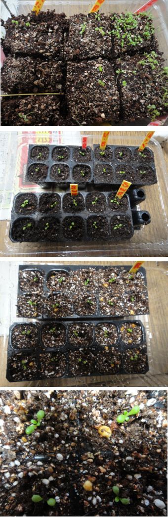 毎日、寒い日ばかりです。今日はとうとう真冬日(最高気温-0.1℃、最低気温-4.8℃)これからどんどん寒くなります。今日から師走、私は12月になると冬至の日を心待ちにします。21日の冬至を過ぎるとだんだん日が長くなります。厳しい冬の日々の中でそのことは毎日春に近づいている実感となりとてもうれしいことなのです。今日は10日前に蒔いたペチュニアの発芽状態をチェックしました。ショックウェーブボルトミックスの発芽状態がよくないので、さらに追加して残りの種を全部蒔きました。2種類の用土を使って種まきの発芽状態をテストしてみます。下段は2週間前に自家採種したペチュニアのタネをまきましたたくさんぱらぱらと蒔いたのですがそれにしてもすごい発芽でした。少しずつですが大きくなっていますが窮屈そうなので少し間引きしようと思います。ず~っと更新していなかったホームページ『我が家の軒下ガーデン「小さな花宇宙」』8月にビオラのページを更新して以来です。今日から作業を開始、予定では年内更新終了。ガーデニングの時期と並行して更新しようとスタート時には思うのですがガーデニングが始まるとなかなか進みません。ついブログの方が優先になってしまいます。今年もシーズンオフになってから今年の反省も込めながらの更新になりました。毎日少しずつ進めて生きます。せっかくいつもご訪問くださっても変わらずのままだったのですが今日からは更新開始しましたので、お立ち寄りください。今日は今年一番の心残りの「ダブルインパチェンス」をまとめました。いつもご訪問いただきありがとうございます。日本ブログ村ランキング参加中です。よろしかったらクリック↑して応援してね!