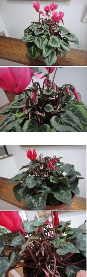 今日も朝から吹雪、出勤の車が果てしなく続いています。冬道の運転は自分の技術ではどうにもならないことも多くて何度も怖い思いをしたり、いつまでも前に進まない雪の朝の渋滞にイライラしたり・・・・大きなストレスでした。そのストレスに比べたら雪かきのほうがず~っと楽ちんかな。ガーデンシクラメンのお花が増えています。今咲いているのは15輪蕾がまだ15以上あるのでもっともっと豪華になるかな、夏越し成功の面白さに目覚めました。来年の夏にはもっとしっかり面倒をみましょう。冬の間は時々画像加工「JTrim」を楽しみます。これは私にとっての頭の体操、新しい画像加工を生み出すのは難しいのですがブログにご紹介された方々の真似とちょっと工夫を加えたりしながら育てたお花を加工して楽しんでいます。上段は http://www.geocities.jp/cstyleweb/gakubuti02.htm 画像を使って作る額縁(バロック風)下段は http://plaza.rakuten.co.jp/benibana2/diary/201009250000/ 鏡に写った画像風 を参考にさせていただきました。いつもご訪問いただきありがとうございます。日本ブログ村ランキング参加中です。よろしかったらクリック↑して応援してね!