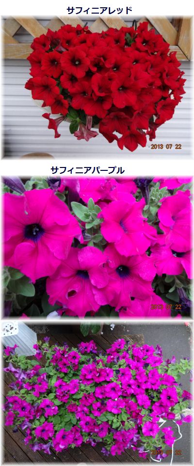 サマーガーデンのメインは「ペチュニア」なのですがなかなか期待通りに咲いてくれません。気温が低いせいでしょうか、それとも育て方に問題があるのかな?サフィニアも例年に比べるとイマイチ広がりません。今年は一株植えにしていることもあるのですが、それにしても蕾がなかなか開かない状態です。蕾ができたころに雨にあったり、避難したりしたこともあるのですが・・・。イージーウェーブは購入種、ほんのわずかですが発芽して育てることができました。大きなお花が咲いて豪華ですが、「ショックウェーブ」よりは花持ちが短い気がします。「ショックウェーブ」は自家採種のものですが、比較的に親によく似て咲いてくれました。来年は種を購入してしっかり育てたいと思います。dekotanさんが交配した「ほほべに」のタネをいただきました。3本の苗が育ったのですが、みなそれぞれ違います。他の一株は仕立て方がまずかったので、切り戻して只今養生中、自家交配のものは思いがけないお花が咲くので其れも楽しいです。たぶん親は株張がしっかりしているのだと思います。その形質が受け継がれているようです。いつもご訪問いただきありがとうございます。日本ブログ村ランキング参加中です。よろしかったらクリック↑して応援してね!