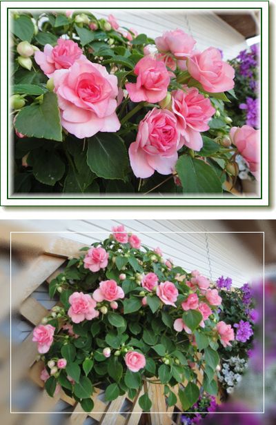 ウオールバスケットの定番「フィエスタ:ピンクラッフル」がきれいに咲き始めました。やさしい色のピンクで我が家のお気に入りのカリフォルニアローズの一品です。A.インパチェンスのウオールバスケットもデビューしました。今年は色を少し変えてみました、サカタのタネの「スカーレット」や「レッド」がとてもきれいな色で来年の「種蒔き候補に決まりました。」B.サントリーのバイオレットとイージーウェーブのブルーがほとんど同じ色です。とてもきれいなブルーです。C.手前にあるオレンジのお花はカリブラコア「リトルパラソル」とても花付がよく行儀よく伸びてくれます。鉢いっぱいになったのでサイズアップしてあげようと思います。現在は7号サイズのテラコッタです。D.マイガーデンの可愛いテラコッタドール、すっかり汚れてしまいました。一度きれいに洗ってあげようと思いながら延び延びになっています。5月21日に種まきしたミニひまわり「グッドスマイル」置き場所がなくて定植が延びていましたが、インパチェンスがデビューしたので長いプランターに定植してその場所に引っ越ししました。蕾が上がってきているので8月初旬には咲いてくれるでしょうか。7月1日に蒔いた葉牡丹です。36粒まきましたが35本の発芽でした。残念!ひょろひょろと伸びてしまったので、土の中に引っ張り込みました。大丈夫かな、途中で折れてしまっていたり・・・、いつもご訪問いただきありがとうございます。日本ブログ村ランキング参加中です。よろしかったらクリック↑して応援してね!