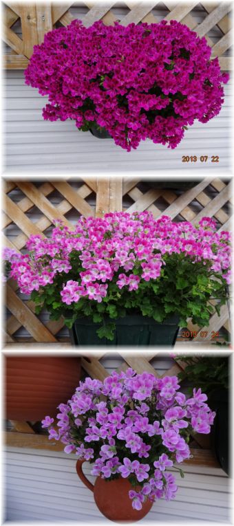ハツユキカズラはやはり色が変わらない、なぜ?カットしたら新芽はピンクの葉っぱが出てくると期待したのですが・・・・やっぱり茶色の葉っぱですね。育て方を調べてみます。これは「フリズルシズルオレンジ」(パンジー)初花は小さいですね、自家採種なのでこの程度のフリルで十分満足です。タネを1年間寝かせたら採種した年の発芽率を上回りました。二つのポットは「ソルベオレンジYTT」YTTの名前の通り毎日少しずつ色が変わっていきます。明日(Tomorrow)はどのように変身してくれるでしょう、この時期のアイビーゼラニウムの様子をまとめておくことにします。初夏にはとても華やかに咲いてくれたスリットバスケットのお花です。また咲き始めました。月曜日はゼラニウムのお世話をする日に決めています。水やり(液肥)はこの日だけなので今のところは1週間に一度です。これからはこの間隔を少しずつ広げていきます。水やりのほかにIB化成肥料を追肥、消毒もしました。此方のアイビーゼラニウムは以前から育てているグループ、昨年はほとんど放りぱなしの状態で育てているとはいえないのですが今年はよく面倒見ています。お花はちゃんと応えてくれますね。葉っぱの色が昨年よりはず~っときれいで生き生きしています。昨年は雨に当たったらすぐ病気になったのですが今年は元気です。いつもご訪問いただきありがとうございます。日本ブログ村ランキング参加中です。よろしかったらクリック↑して応援してね!