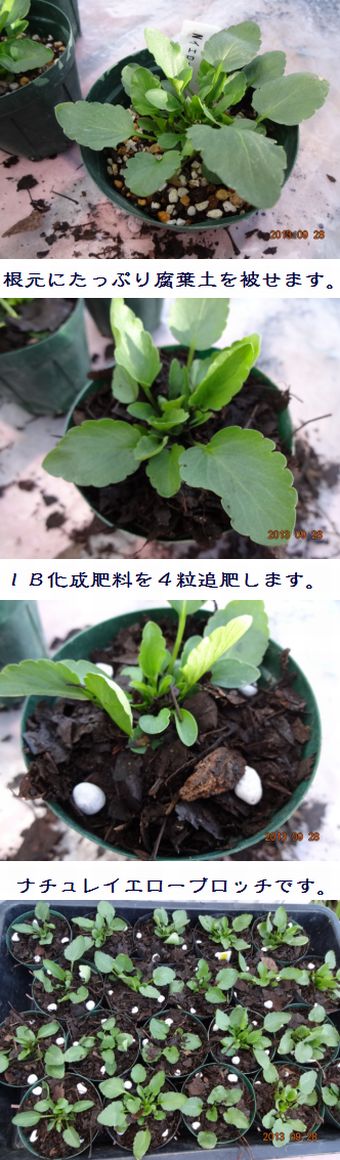 ビオラのポットは3号サイズ(9cm)、このまま苗床に埋めて冬越しします。その作業は10月20日前後、それまでにやっておく作業の最終段階です。株が大きくなってポットからあふれてしまうと作業がやりにくいので早めにします。腐葉土で保温、保湿作用を安定させたり、雨の跳ね返り防止等々です。いつもはピートバンで種まきしますがちょっとお遊びのつもりが、結果が予想以上に良いので来年はこの方法でやろうかと考え始めています。暑い日差しも豪雨もそのまま当たり放題、それでもこんなに元気です。更に肥料のやり方の実験も加えました。少々多めの肥料散布も問題なし。この方法でやるのが丈夫な苗ができるのではないかという結論です。此方の方がなんとなく頼りなく感じてしまいます。過保護は苗の生命力を弱めてしまうのではないかと反省しました。昨年よりはず~っと気温が低めです。この花たちも最後のステージになりました。もう2度とこの場所には戻りません。あと少し経ったら裏庭で解体です。だんだん花たちが弱っていくのでこの時期はさびしい思いがしばらく続きます。いつもご訪問いただきありがとうございます。日本ブログ村ランキング参加中です。よろしかったらクリック↑して応援してね!