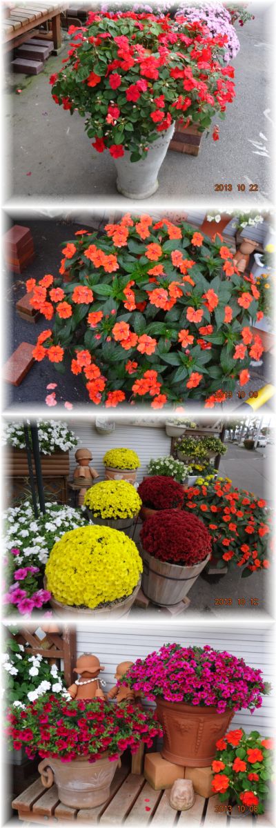 朝起きたら真っ白、雪かきも湿り雪は堪えます。すぐと融ける雪なので放っておいていいのですが、やっぱりきれいにすると気持ちすっきり。でも小屋根に積もった雪が軒下に落ち、そのたびに雪を片づけます。カリフォルニアローズがせっかく咲いているので片づけられずにいます。でもお花もだんだん小さくなって、色も薄くなってきました。何時まで咲くのかな~。我が家の軒下ガーデン「小さな花宇宙」は私のつたないHPです。毎年のガーデン記録を残したい勢い込んで始めたのですが、なかなか更新できないままに今年もガーデニングの季節が終わってしまいました。最近はそのことにあまり気にせずガーデニングオフになったらゆっくりしようと決めたのですがさすがにこのままでは昨年のように年内にはすべて終わりそうもなくなりました。・・・また、また、もう一人のルーズな私が「来年のガーデニングが始まるまでに終えればいいじゃない」そのような囁きに負けそうな気がしています。長時間の根を詰めたPC操作が加齢とともにだんだん疲れを感じるようになりました。せっかくご訪問くださる方には申し訳ないのですが、春までゆっくり、のんびりお付き合いくださいますようお願いいたします。今日の更新はブログがカリフォルニアローズのアップだったので「2013年ダブルインパチェンス」です。ちょっと手抜きして簡単に。いつもご訪問いただきありがとうございます。日本ブログ村ランキング参加中です。よろしかったらクリック↑して応援してね!