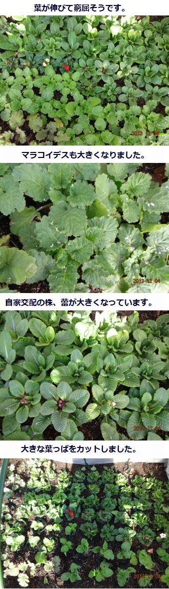 北海道の内陸部では100cmを超える積雪を記録した地域もあるというのに、わが街は最高気温9.6℃、日差し(日照時間5.8h)もいっぱいあって暖かな一日でした。今日はプリムラの不織布トンネルの点検とその手入れをしましたが、心地よい冬の日差しに感謝です。プリムラグループのトンネルは小さいのが2か所場所がないのでびっしり詰めたので葉っぱが伸びたら窮屈そうです。それで我が家流のスペーシングをしました。ポリアンサはたくさんの蕾が上がってきましたがマラコイデス、シネンシス、雲南サクラソウなどは蕾らしいのは発見できませんでした。順調に伸びてきています。株のでき方がしっかりしているので冬越しも大丈夫と思います。追肥をしたほうがいいと思うのですが・・・近いうちに。夏越して株分けしたポリアンサはすっぽり腐葉土を被せてプランターごと土に埋めました。腐葉土から顔を出してお花も咲きだしました。ポリアンサはどのようなお花が咲くのか毎年だいだい判るのですが、やっぱり咲くと嬉しいですね。ポリアンサのお花も丁寧にカットして株の方に栄養が行くようにします。いつもご訪問いただきありがとうございます。日本ブログ村ランキング参加中です。よろしかったらクリック↑して応援してね!